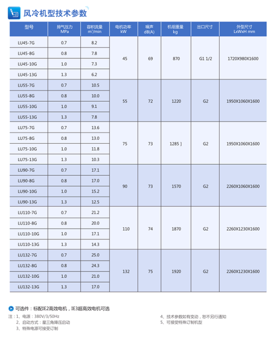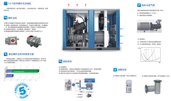 ·LU90-250kW系列螺桿式壓縮機(jī)主機(jī)具有最佳的螺桿線速度及很高的壓縮效率,比市場上同類產(chǎn)品節(jié)能5%以上。